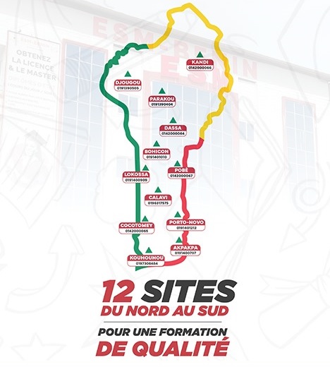 ESM-BENIN a son siège à Cotonou en face du Stade de l’Amitié Général Mathieu Kérékou. Elle dispose d’un site à Akpakpa, et dans les villes d’Abomey-Calavi, de Porto-Novo, de Bohicon, de Lokossa, de Djougou et de Parakou.